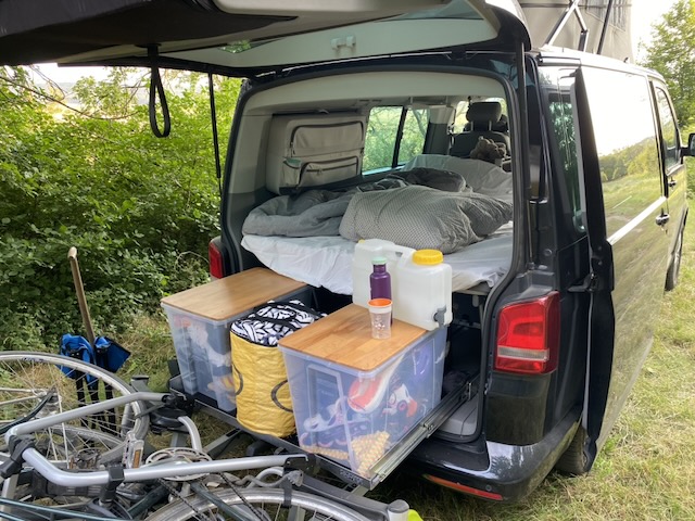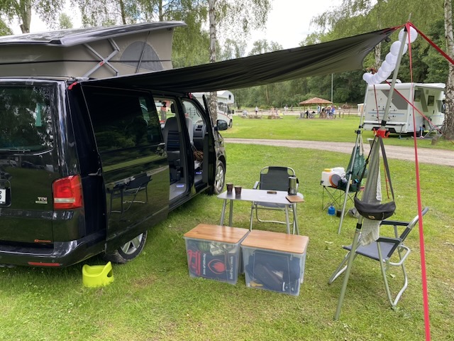Und zum Schluss merkte meine Frau richtigerweise an: Wenn wir schon so viel Geld ausgeben, dann doch einen mit Aufstelldach, damit man drin schlafen kann …