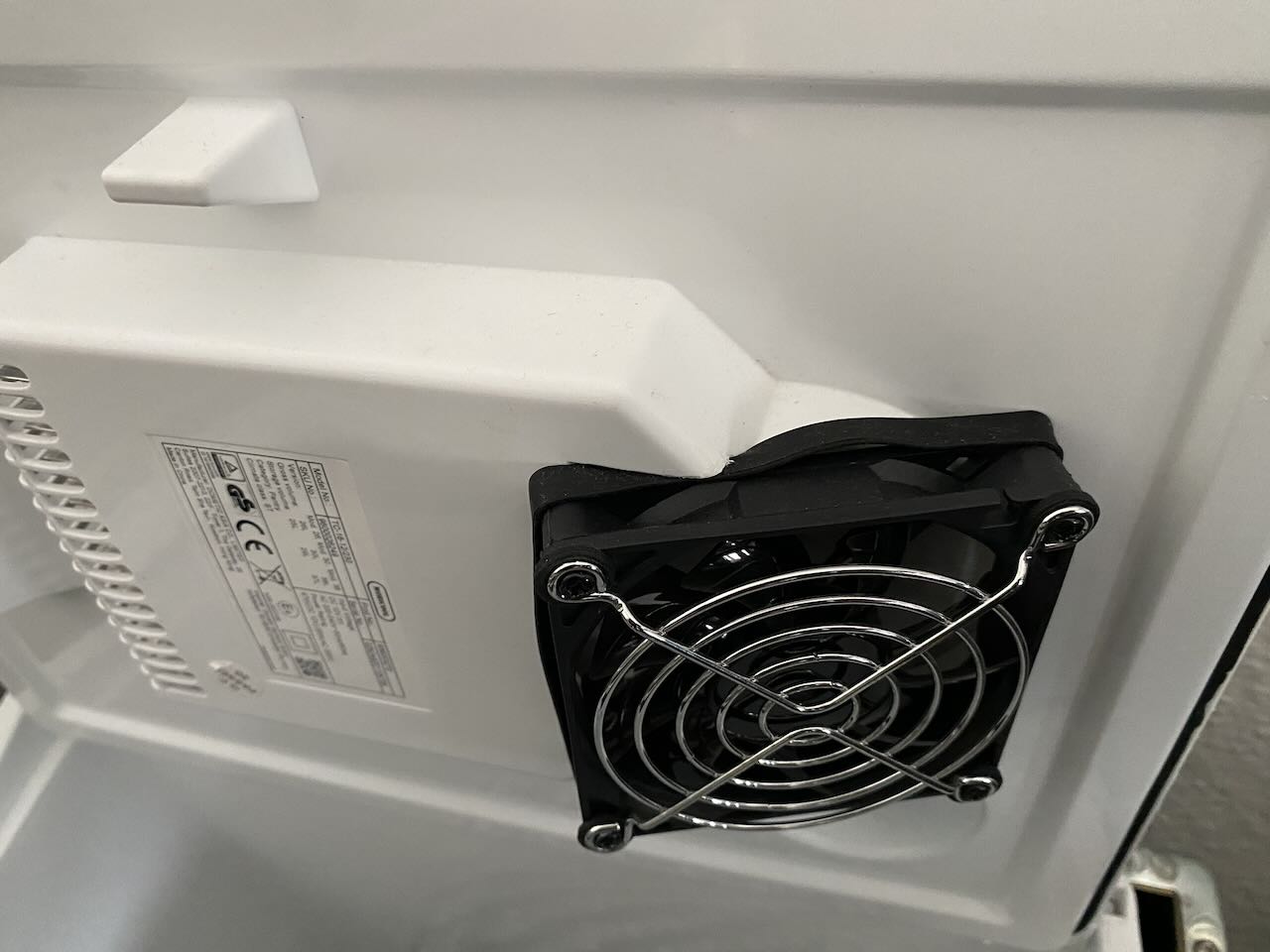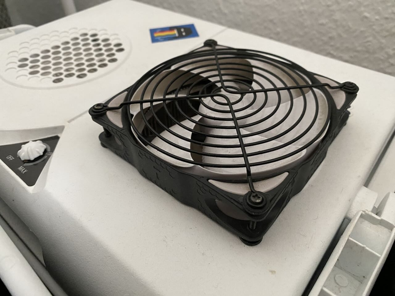 Also folgendes Projekt: Ersetze die lauten Radiallüfter in der Kühlbox mit leisen PC-Lüftern.